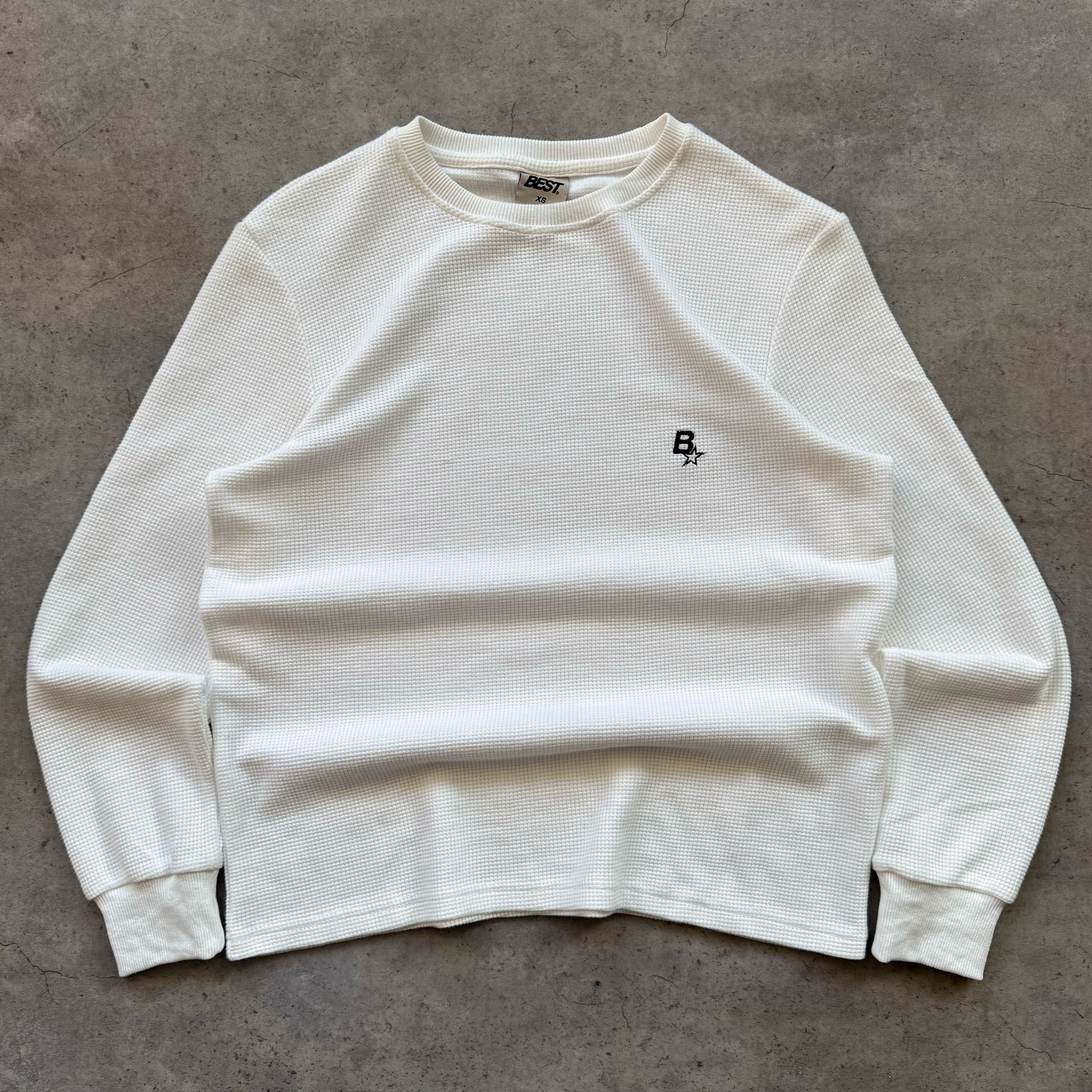 Longsleeve white waffle with small BSTAR embroidery on the left chest.